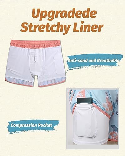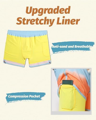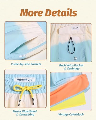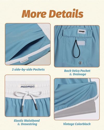 maamgic Mens Short 80s 90s Vintage 5.5" Swim Trunks Swimsuits Board Shorts Compression Liner Quick Dry 2 in 1 Beach Swimwear