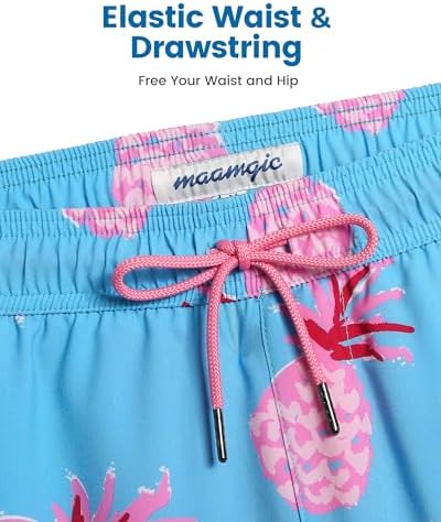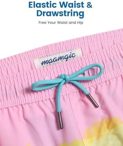 maamgic Mens Swim Trunks with Compression Liner 5" Stretch Beach Shorts Quick Dry with Zipper Pockets No-Chafing Board Shorts