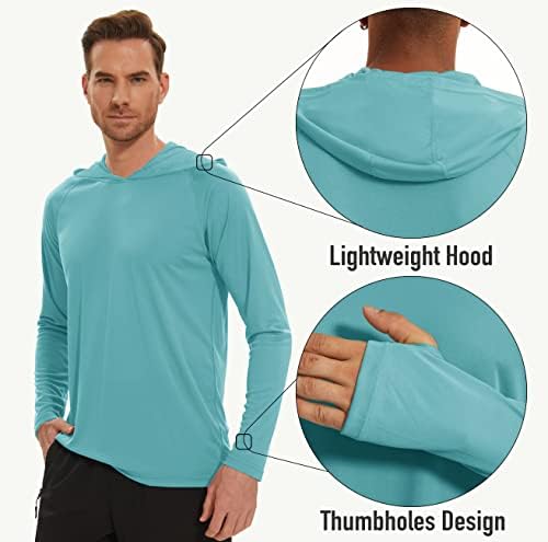 MAGCOMSEN Men's Hooded UPF 50+ Sun Protection T Shirts Long Sleeve Athletic Fishing Shirts Rash Guards