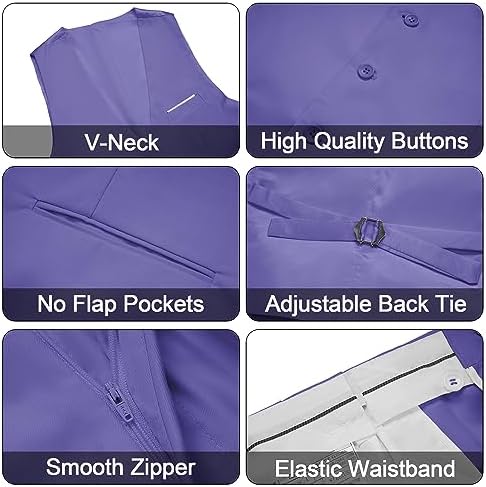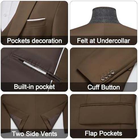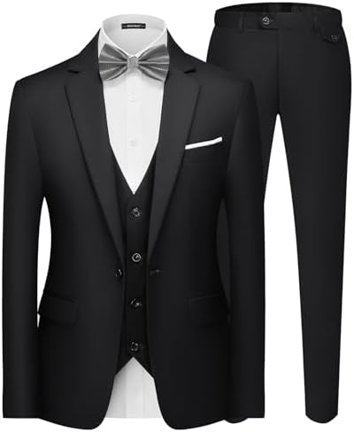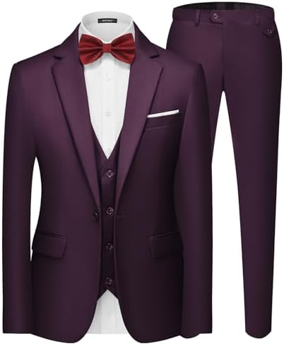 MAGE MALE Men's 3 Pieces Suit Elegant Solid One Button Slim Fit Single Breasted Party Blazer Vest Pants Set
