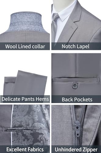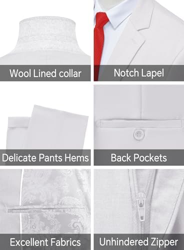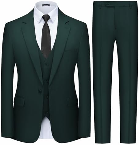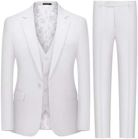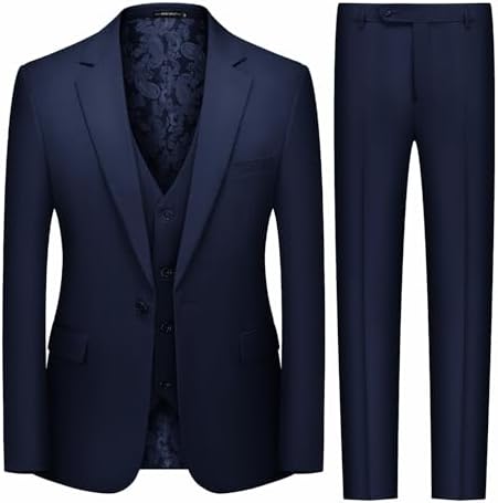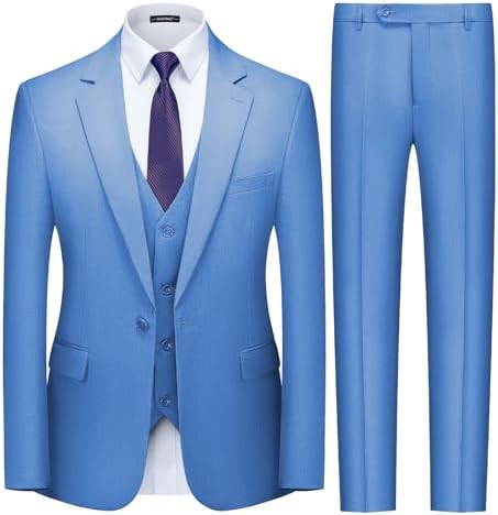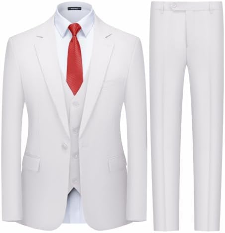 MAGE MALE Men's 3 Pieces Suit Slim Fit One Button Business Wedding Party Solid Blazer Vest Pants Set with Tie