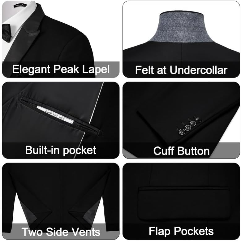 MAGE MALE Men's Slim Fit 3 Piece Suit One Button Solid Shawl Lapel Blazer Jacket Vest Pants Set with Tie Pocket Square