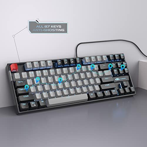 MageGee 75% Mechanical Gaming Keyboard with Blue Switch, LED Blue Backlit Keyboard, 87 Keys Compact TKL Wired Computer Keyboard for Windows Laptop PC Gamer - Blue/White