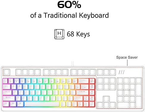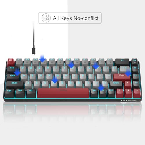 MageGee Portable 60% Mechanical Gaming Keyboard, MK-Box LED Backlit Compact 68 Keys Mini Wired Office Keyboard with Red Switch for Windows Laptop PC Mac - Black/Grey