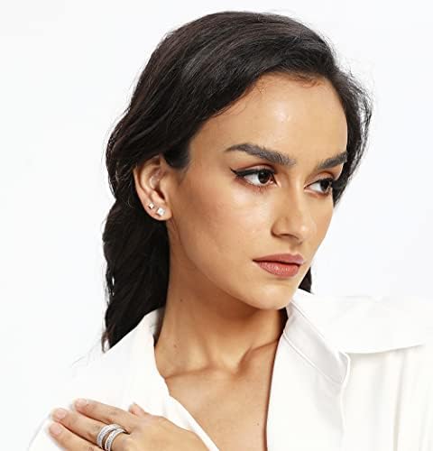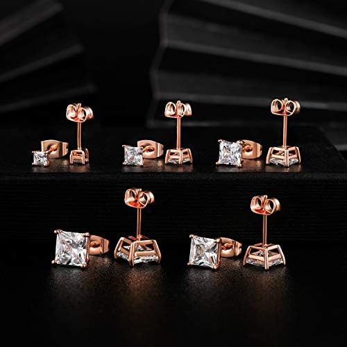 MDFUN 18K White Gold/Yellow Gold/Rose Gold Plated Princess Cut Square Clear Cubic Zirconia Stud Earring Pack of 5 Pairs
