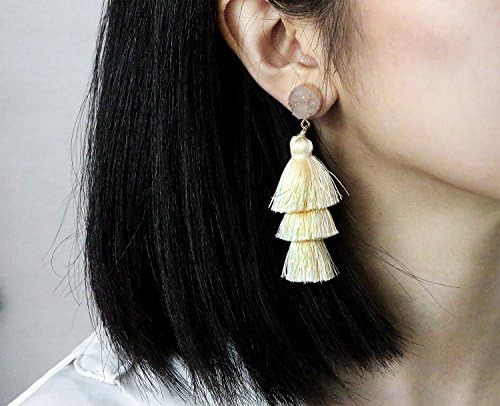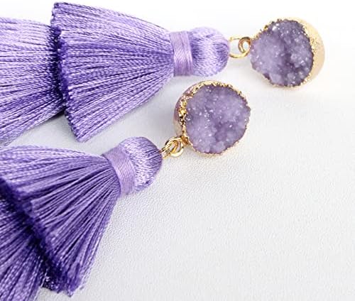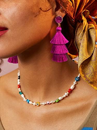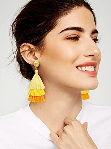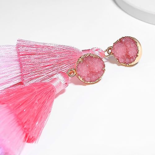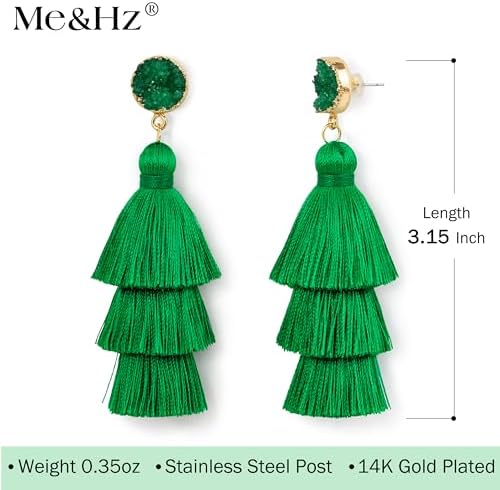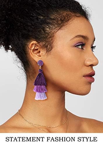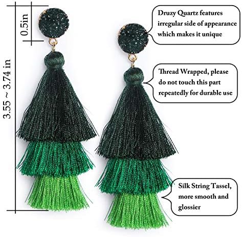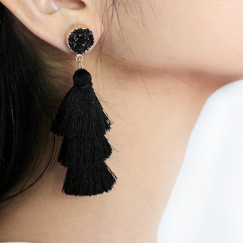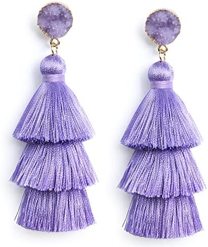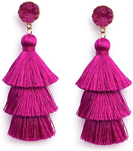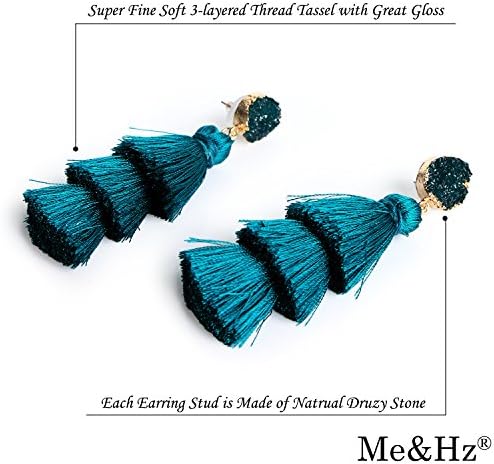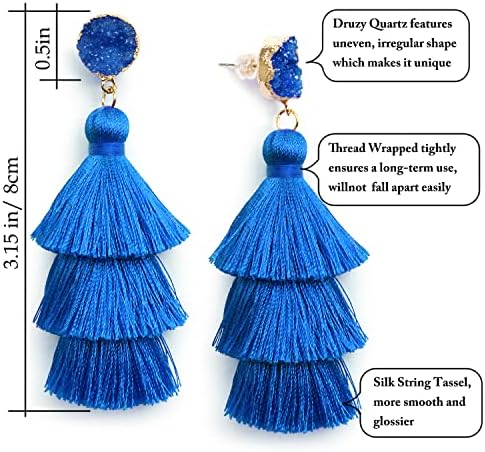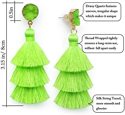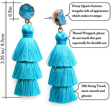 Me&Hz Colorful Layered Tassel Earrings Bohemian Tiered Tassel Druzy Stud Dangle Drop Earrings for Women Teen Girls Christmas Mother's Day Gift
