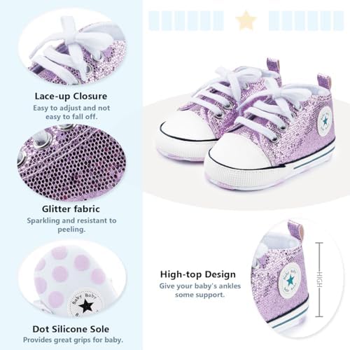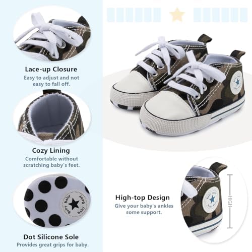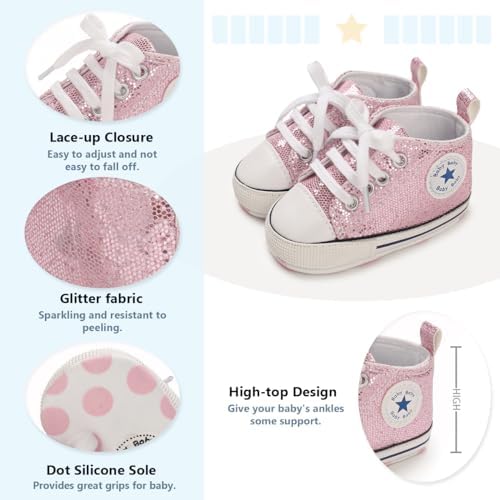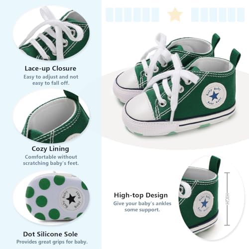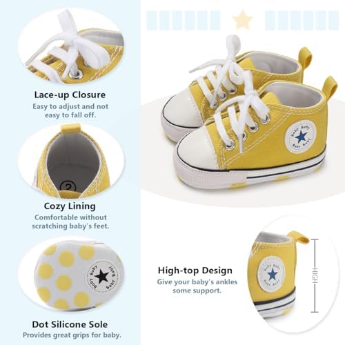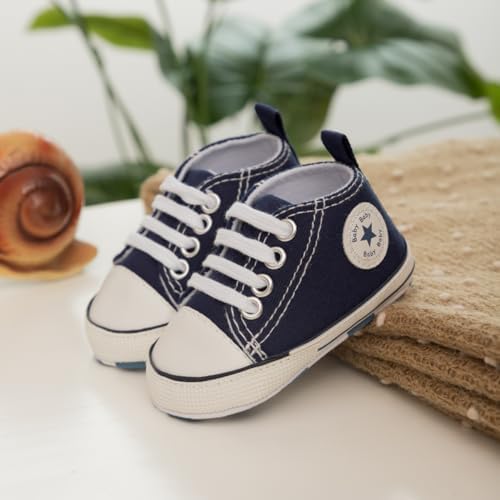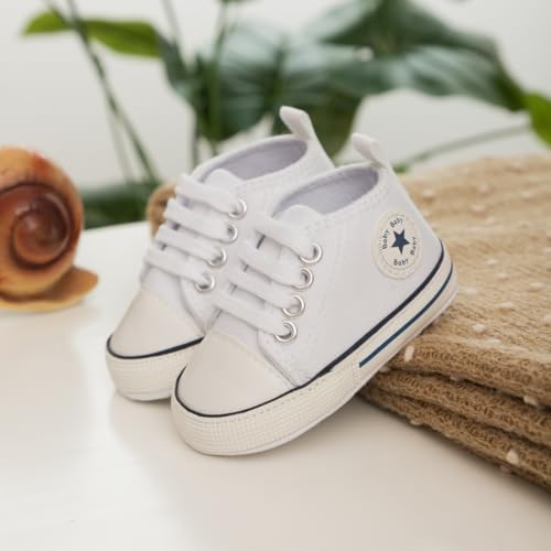 Meckior Baby Girls Boys Canvas Sneakers Soft Sole High-Top Ankle Infant First Walkers Crib Shoes