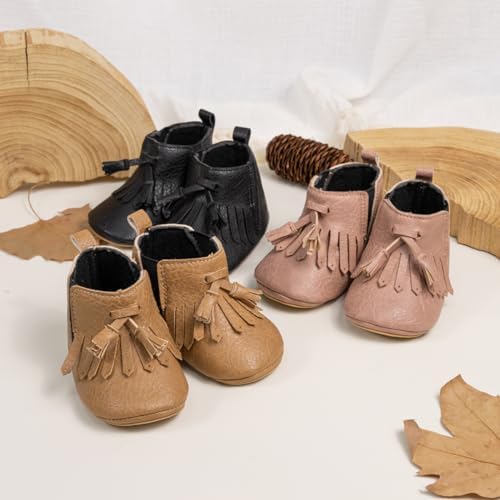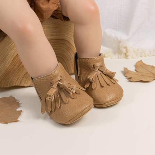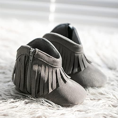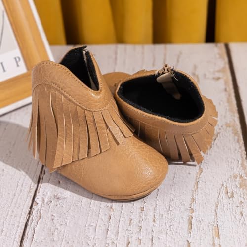 Meckior Baby Girls Cowboy Tassel Boots Side Zipper Moccasins Soft Bottom Non-Slip Toddler Shoe