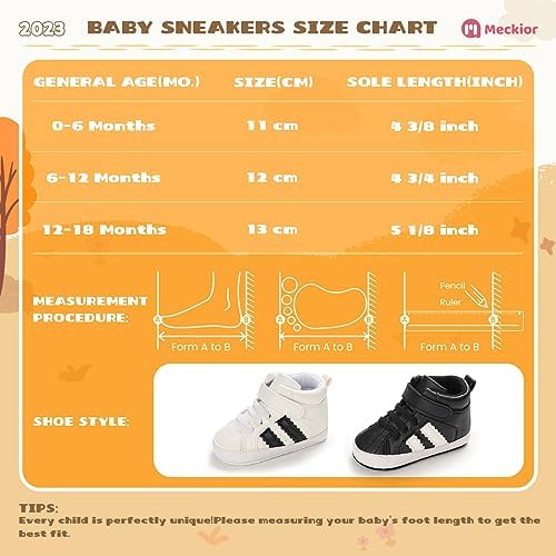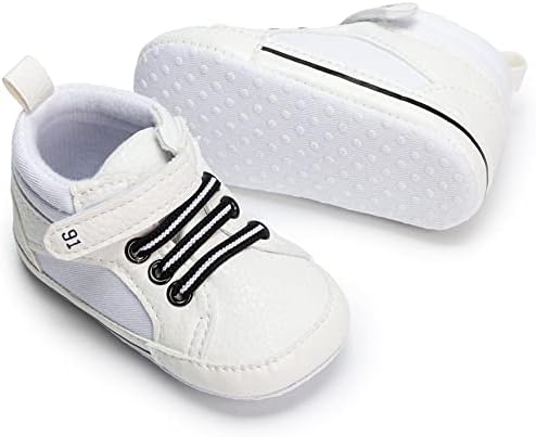 Meckior Toddler Baby Boys Girls High Tops Ankle Sneakers Soft Anti-Slip Sole PU Leather Moccasins Infant Newborn Prewalker First Walking Crib Shoes