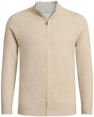 Men's 100 Percent Merino Cashmere Zipper Cardigan Stand Up Collar Casual Fashion Double-Sided Winter Sweater