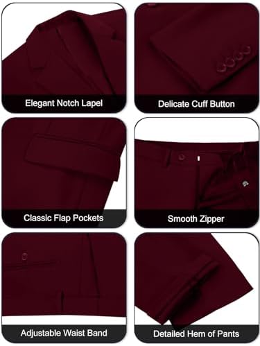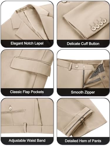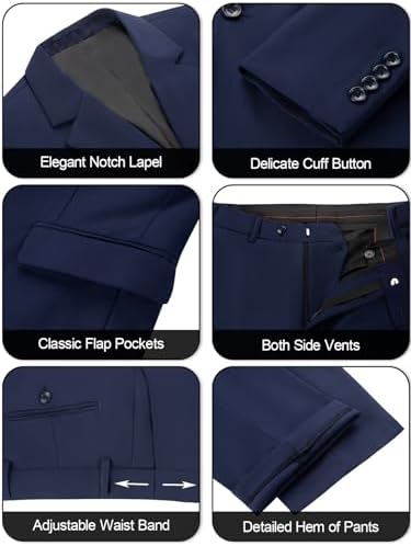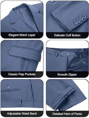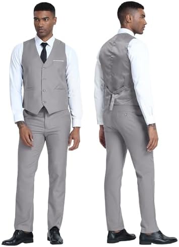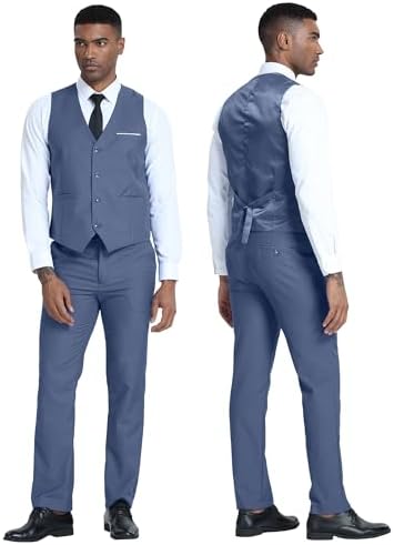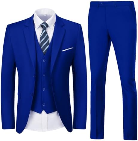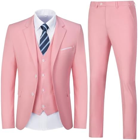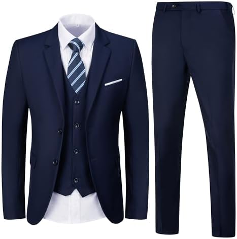 Men's 3 Piece Slim Fit Suit Set, Two Button Blazer Solid Suit Jacket Vest Pants Tuxedo Set for Wedding Prom