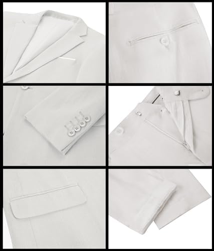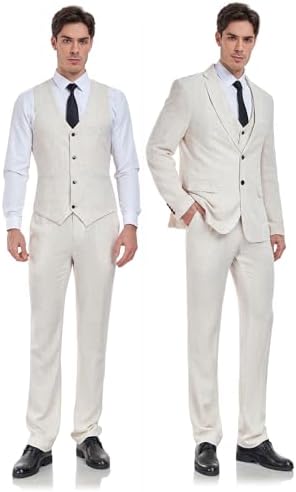Men's 3 Pieces Linen Suit Slim Fit Summer Wedding Tuxedo Retro Grooms Prom Party Blazer Vest Pants