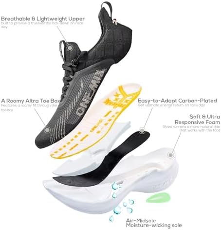 Men's Road Running Shoes Marathon Running Shoes Carbon Fiber Plate Running Shoes Wide with Arch Support Lightweight Breathable Sneakers ONEMIX Light Armor 21601