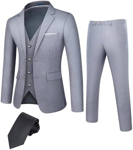 Men's Slim Fit 3 Pieces Suit Set Business Casual Men Suit Two Button with Tie