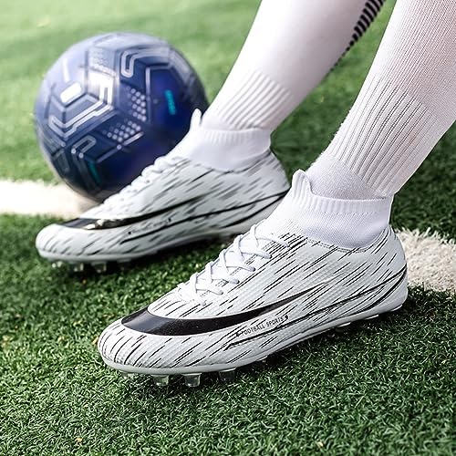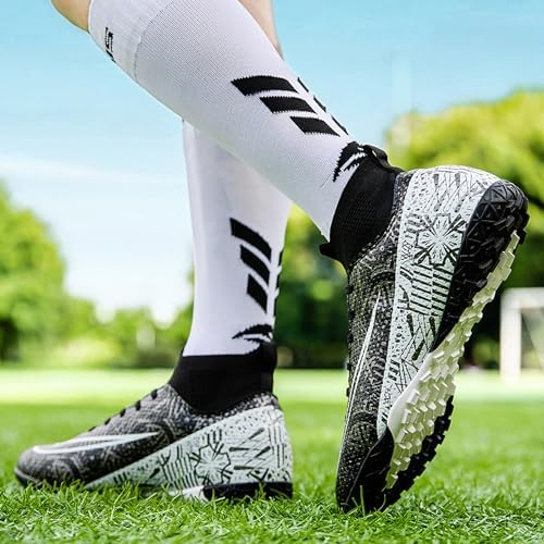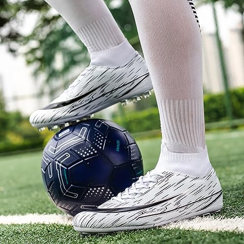 Men's Soccer Cleats Football Shoes with High-Tops Lace-Up Non-Slip Short Spikes Rubber Outsoles Indoor Firm Ground Turf Futsal Cleat