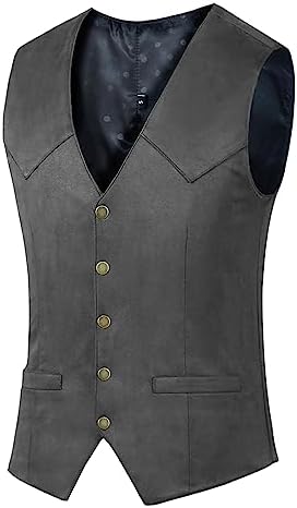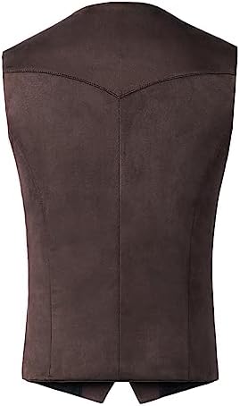 Men's Suede Leather Vest Vintage Cowboy Style Sleeveless Jacket Slim Fit Wedding Waistcoats
