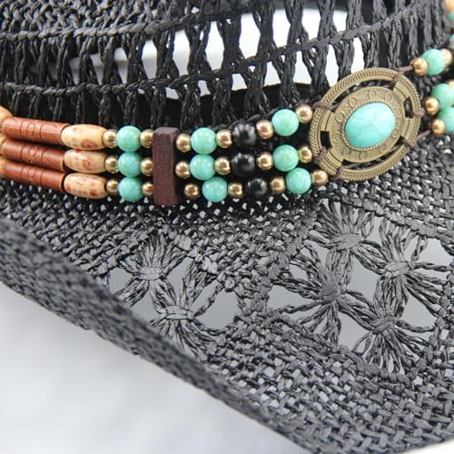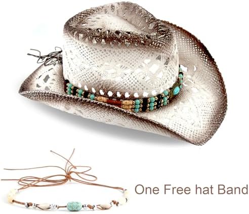 Men's Women's Straw Cowboy Hat Cowgirl Woven Sun Hat Western Cowboy Hat Two Decorative Bands