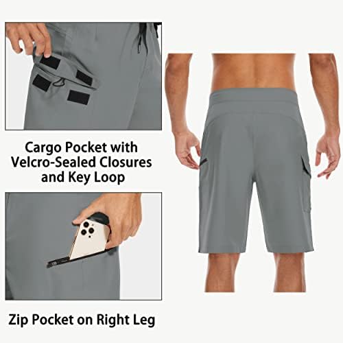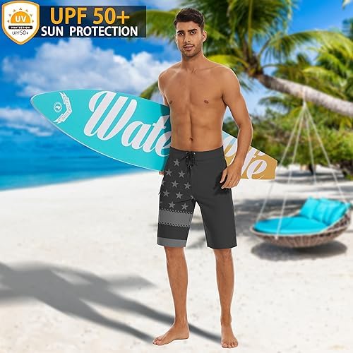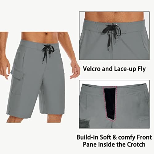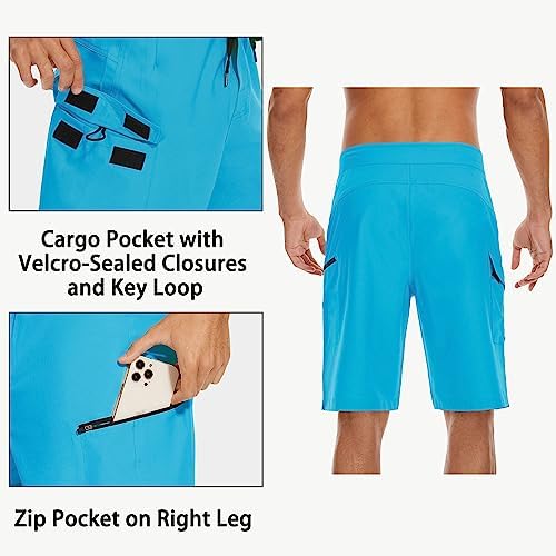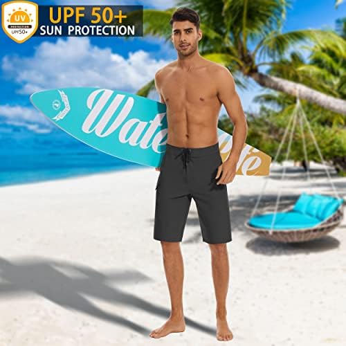 Mens 22" Board Shorts No Lining with Zipper Pockets Extra Long Bathing Suit Bottoms Swim Shorts Trunks Quick Dry UPF50+