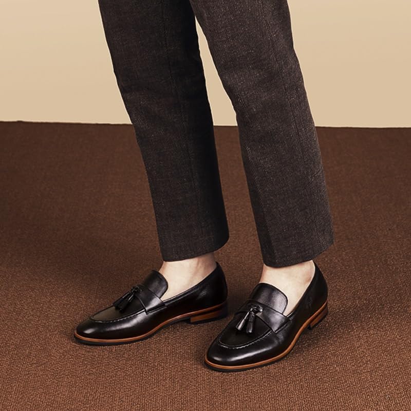 Men's Leather Slip-On Dress Shoes Classic Formal Pointed-Toe Comfort Office Business Fashion Oxfords Shoes