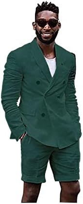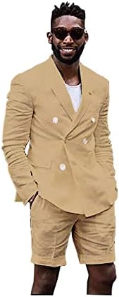 Mens Linen Cotton Shorts Suit Casual Grooms Beach Wedding Slim Fit Tuxedo Suit Blazer & Shorts Set