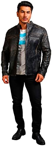 Mens Skull & Bones Black Distressed Leather Vintage Motorcycle Cowhide Jacket