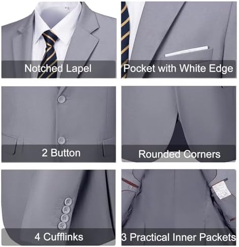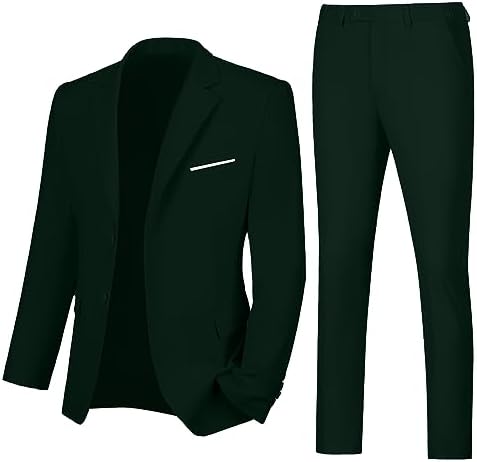 Mens Slim Fit 2 Piece Suit Two Button Notched Lapel Solid Suit Jacket Pants Set Tuxedo for Prom
