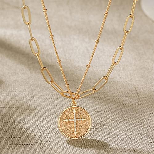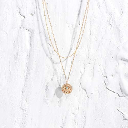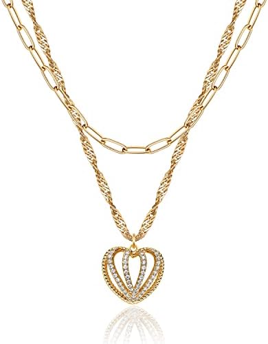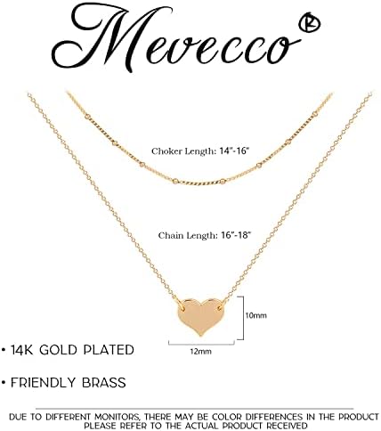 MEVECCO Layered Heart Necklace Pendant Handmade 18k Gold Plated Dainty Gold Choker Arrow Bar Layering Long Necklace for Women