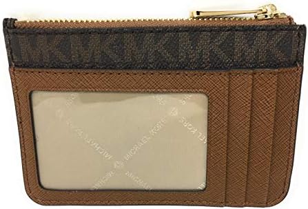 Michael Kors Jet Set Travel Small Top Zip Coin Pouch with ID Holder - PVC Coated Twill (Brown & Acorn)