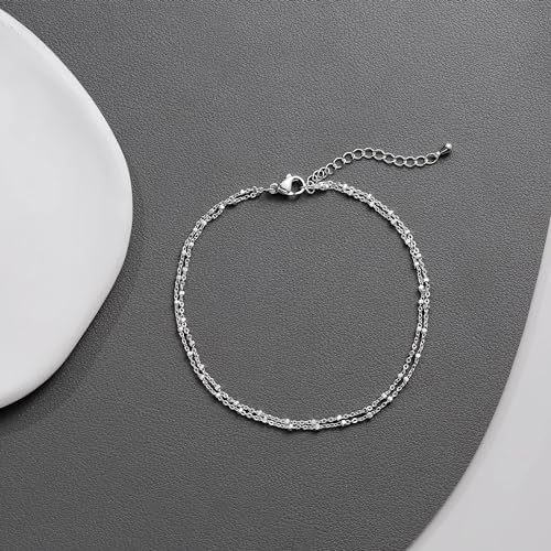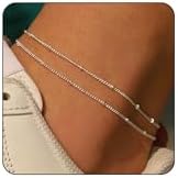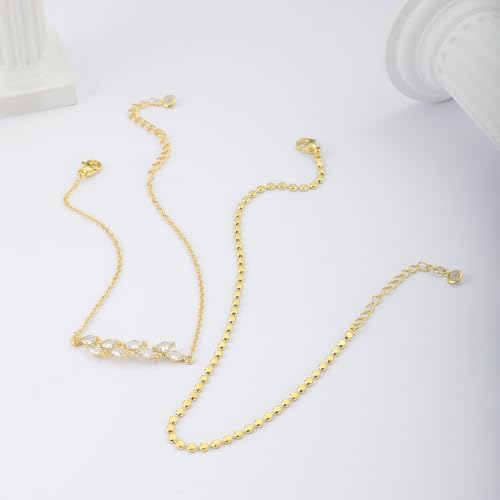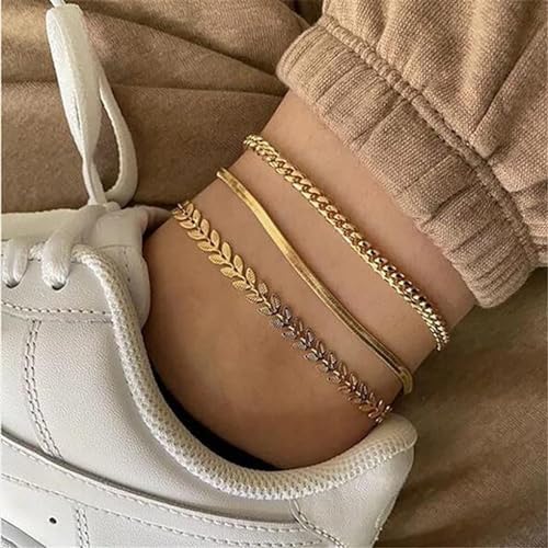 MIDEEO Gold/Silver Ankle Bracelets for Women,14K Gold Anklets for Women Waterproof Cuban Link Heart Beads Herringbone Rhinestone Anklets Set Layered Anklet Bracelets for Women Gold Jewelry Gift