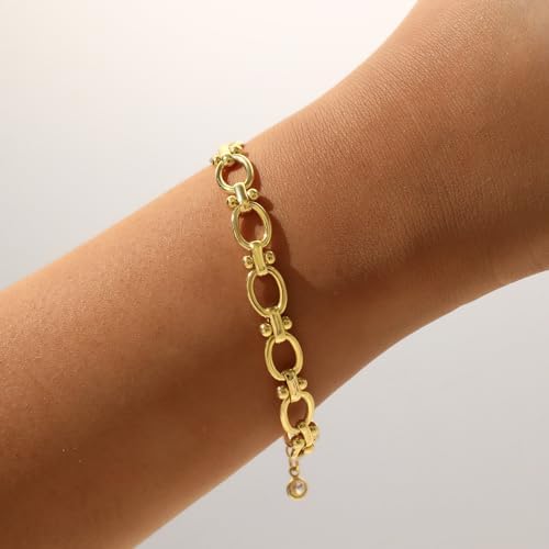 Gold Bracelet for Women Stack 14K Real Gold Plated Bangle Cuff Bracelet Set Gold Beaded Tennis Paperclip Cuban Link Chain Bracelets for Women Trendy Non Tarinish