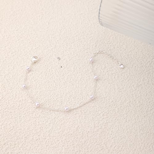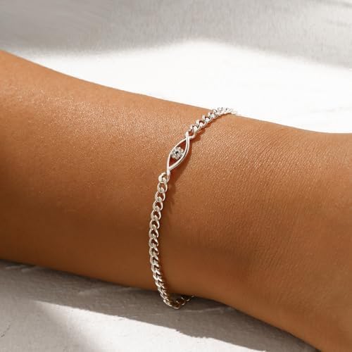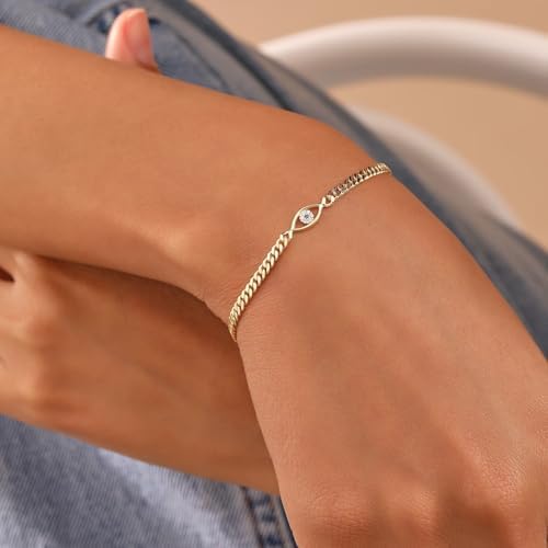 MIDEEO Gold/Silver Bracelets for Women,14K Gold Plated Bracelets for Women Evil Eye Diamond Cuban Link Heart Pearl Bracelets Everyday Jewelry Gift