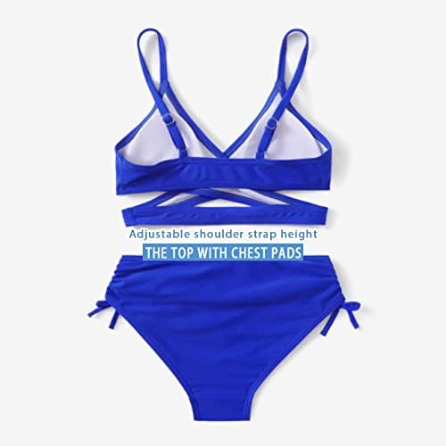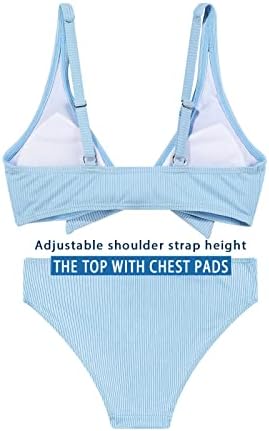 MIENOE Teen Girls' Swimsuits Two-Piece V-Neck Bikini Adjustable Shoulder Straps Swimsuit Kids Bikini with Chest Pad