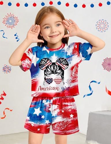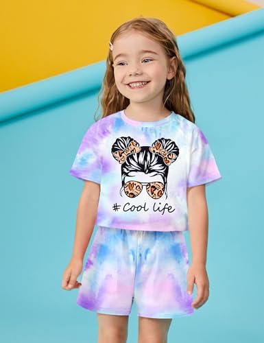 MIGU Toddler Girls Clothes Tie-Dye Summer Outfits Sets with Short Sleeve T-Shirt Top+Girls Shorts 2pcs Sets