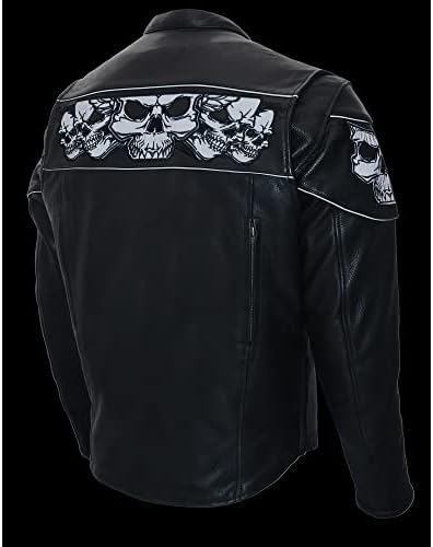 Milwaukee Leather Men's Crossover Stand Up Collar Motorcycle Jacket MLM1500 w/Reflective Skulls & Two Inside Gun Pockets
