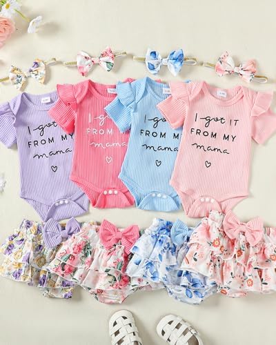 Mioglrie Newborn Infant Baby Girl Clothes Romper Shorts Set Floral Summer Outfits Cute Baby Clothes Girl