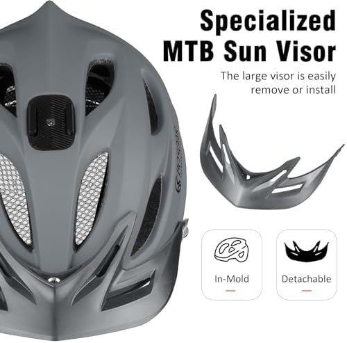 Mountain Bike Helmet,Adult Cycling Helmet with Camera Mount and Detachable Visor for Men Women Youth,Suggested Fit 55-61 Cm