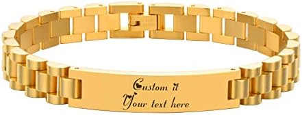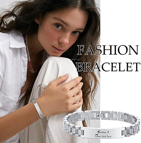 MPRAINBOW Personalized Women Thick Link Bracelet - Love Quote Name ID Engraved Link Bracelet,Adjustable Watch Band Chain Wristband Jewelry Gifts to Lover Girlfriend Wife Mom Sister