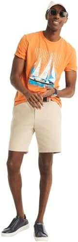 Nautica Men's Classic Fit Flat Front Stretch Solid Chino 8.5" Deck Shorts