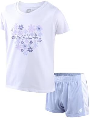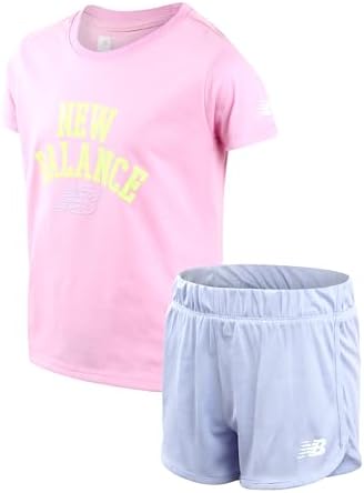 New Balance Girls' Active Shorts Set - 2 Piece Performance T-Shirt and Gym Shorts (4-12)