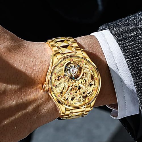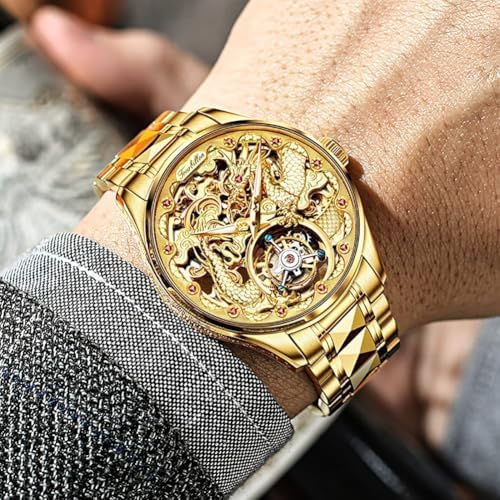 OUPINKE Tourbillon Watch for Men & Global exclusive release of hollow carved dragon watch Automatic