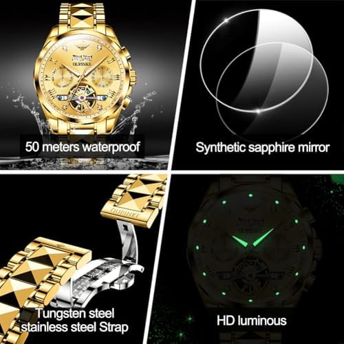 OUPINKE Men's Watch Automatic Designer Big Face Luxury Mechanical Skeleton Dress Business Wrist Watches Two Tone Tungsten Steel Waterproof Sapphire Calendar