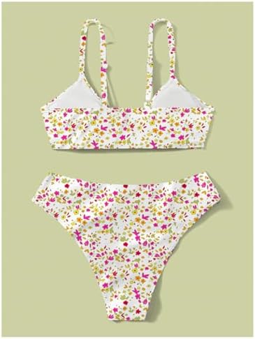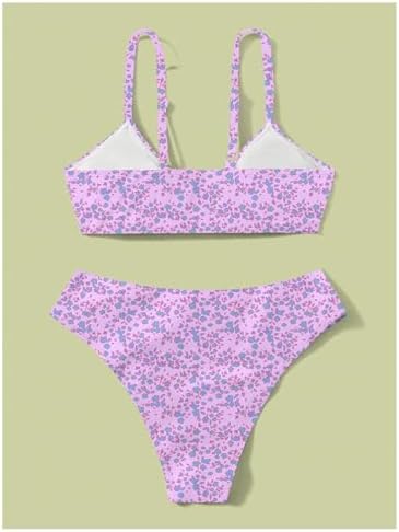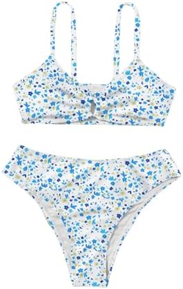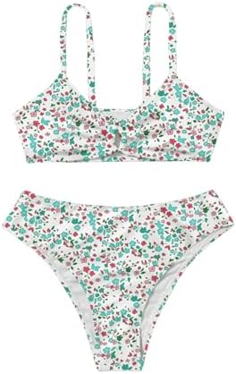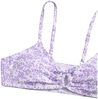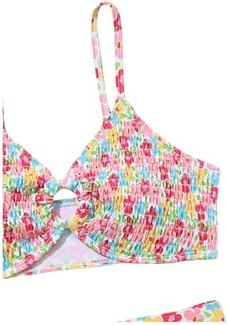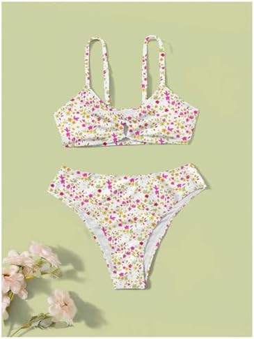 OYOANGLE Girl's 2 Piece Ditsy Floral Bikini Swimsuit Ring Linked Ruched Bathing Suit