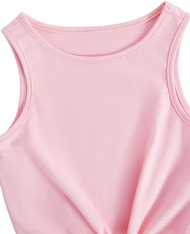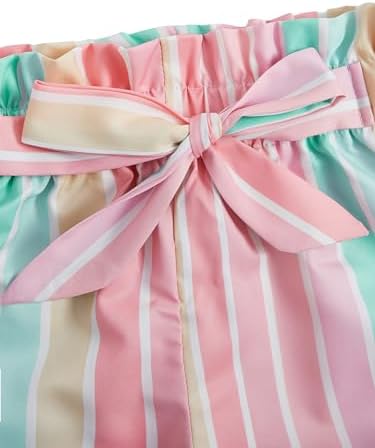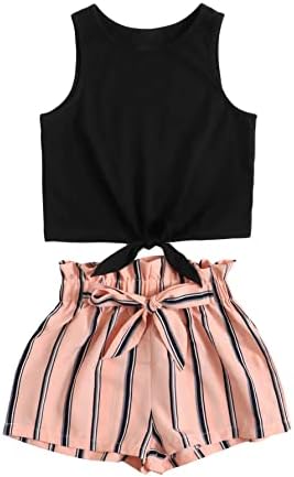 OYOANGLE Girl's 2 Piece Outfits Summer Tie Knot Tank Top and Paperbag Waist Striped Shorts Set