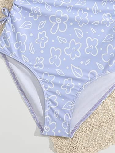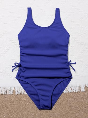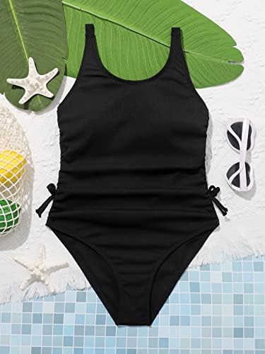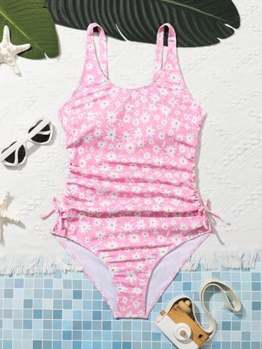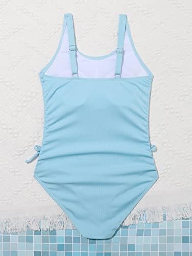 OYOANGLE Girl's Cute Spaghetti Straps Round Neck Drawstring One Piece Swimwear Tie Bathing Suit