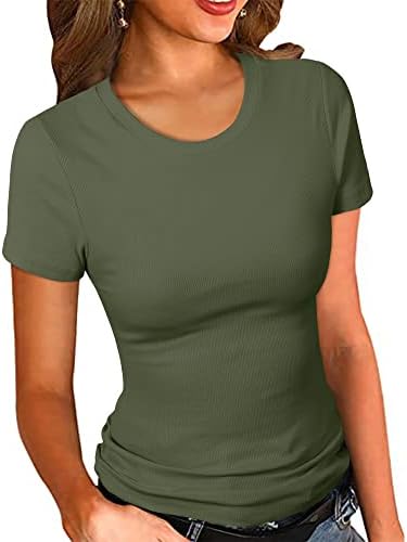PALINDA Women's Crew Neck Ribbed Fitted Shirt Basic Short Sleeves Summer T Shirt Tops