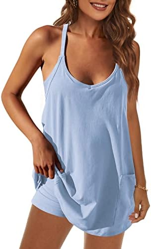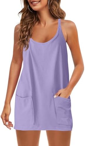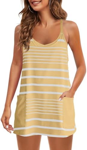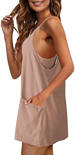Panadila Womens Summer Sleeveless Mini Dress V Neck Spaghetti Strap Sundress Athletic Short Dress with Pockets
