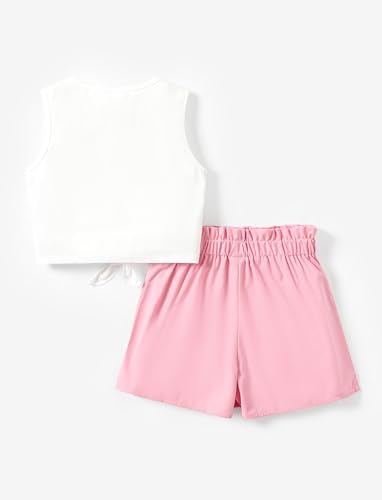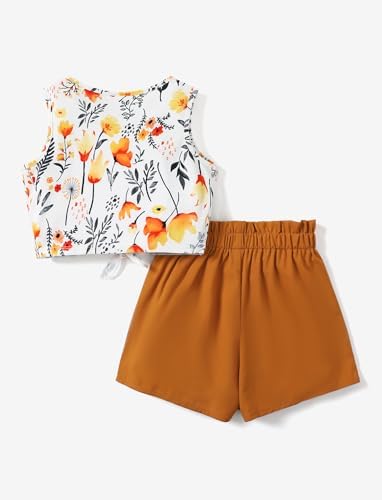 PATPAT Girl's 2 Piece Outfits Sleeveless Tie Knot Crop Top Elastic Short Summer Clothes Set 4-12Y