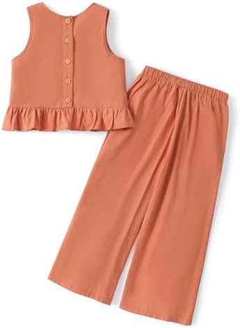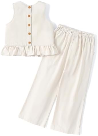PATPAT Girls Clothing Set Linen Sleeveless Button Back Tank Crop Tops and Wide-Leg Ankle Pants with Pocket Outfits