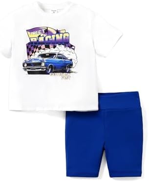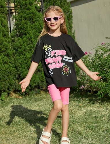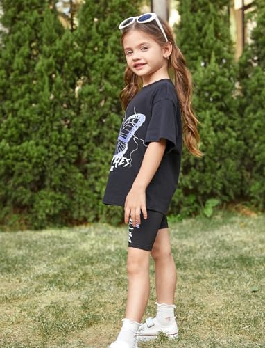 PATPAT Kids Girls 2Pcs Clothes Set Oversized T Shirt Short Sleeve Top and Pattern Print Biker Shorts Summer Outfits