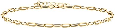 PAVOI 14K Gold Plated Charm Link Flat Gold Anklets for Women
